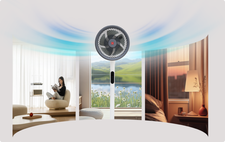 The dual-layer blade design segments airflow in stages, delivering a smoother, more comfortable breeze that feels natural and gentle.