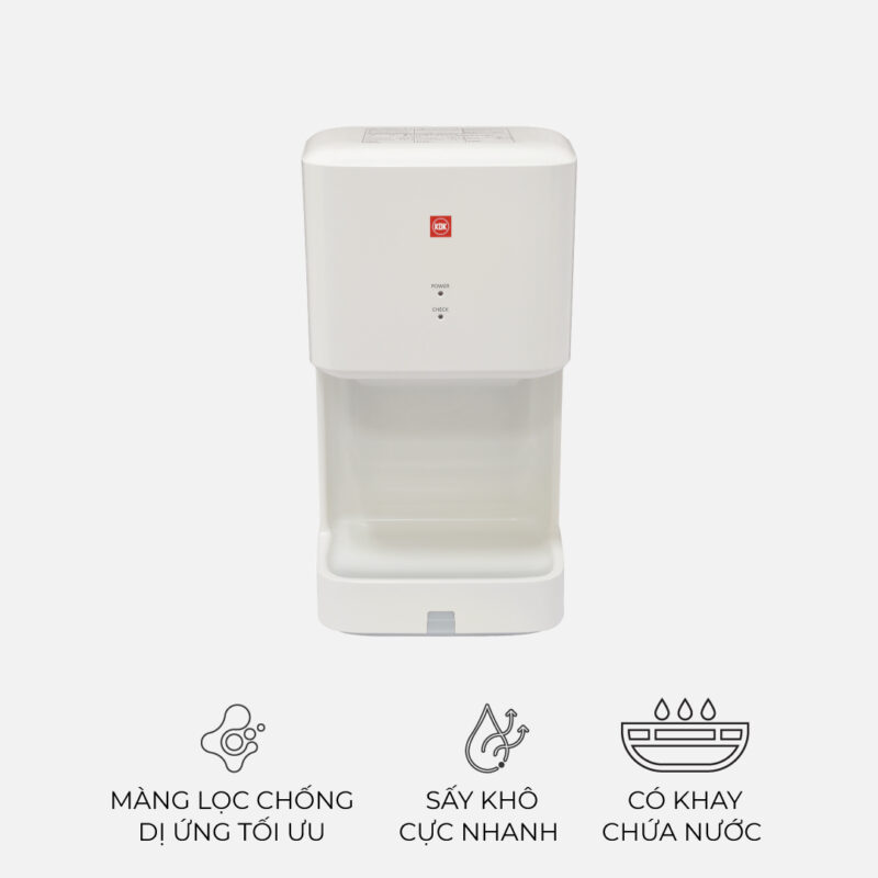 • Automatic sensor operation • Super-alleru buster filter equipped • Wall Mount installation • Heater ON/OFF switch for energy saving • Anti-bacterial material • Safety check light function • Quick drying with 3-way airflow • Drain pan and water tray equipped