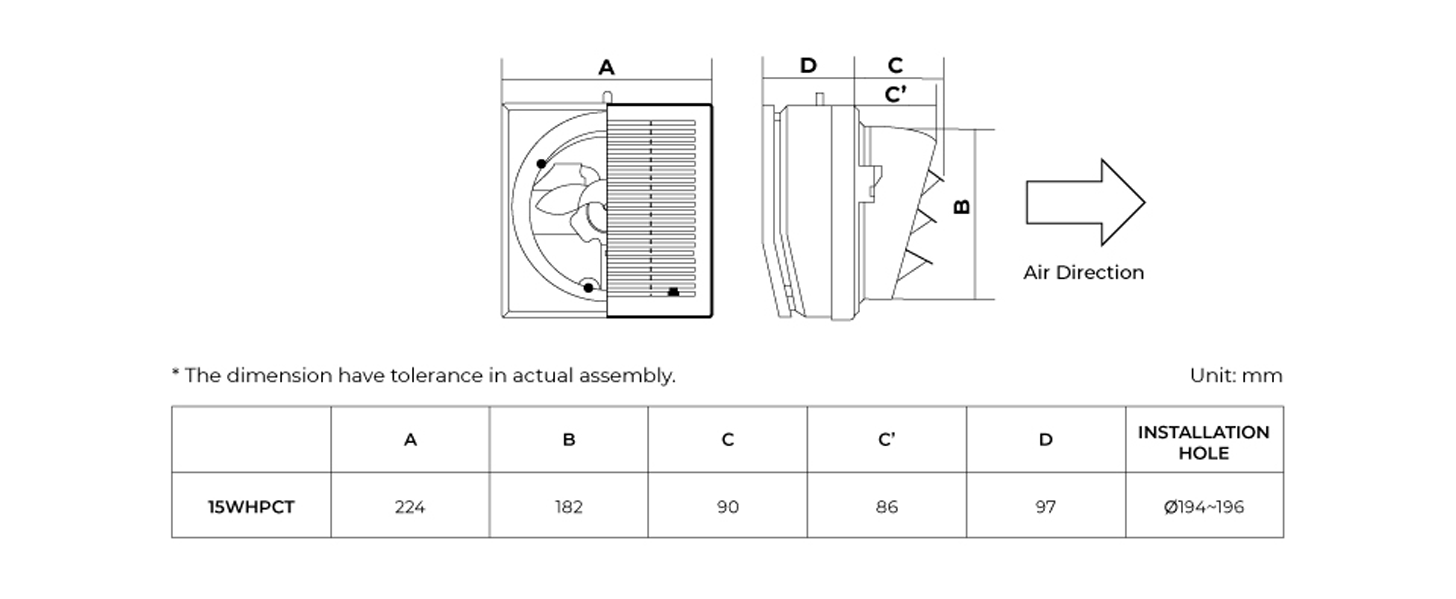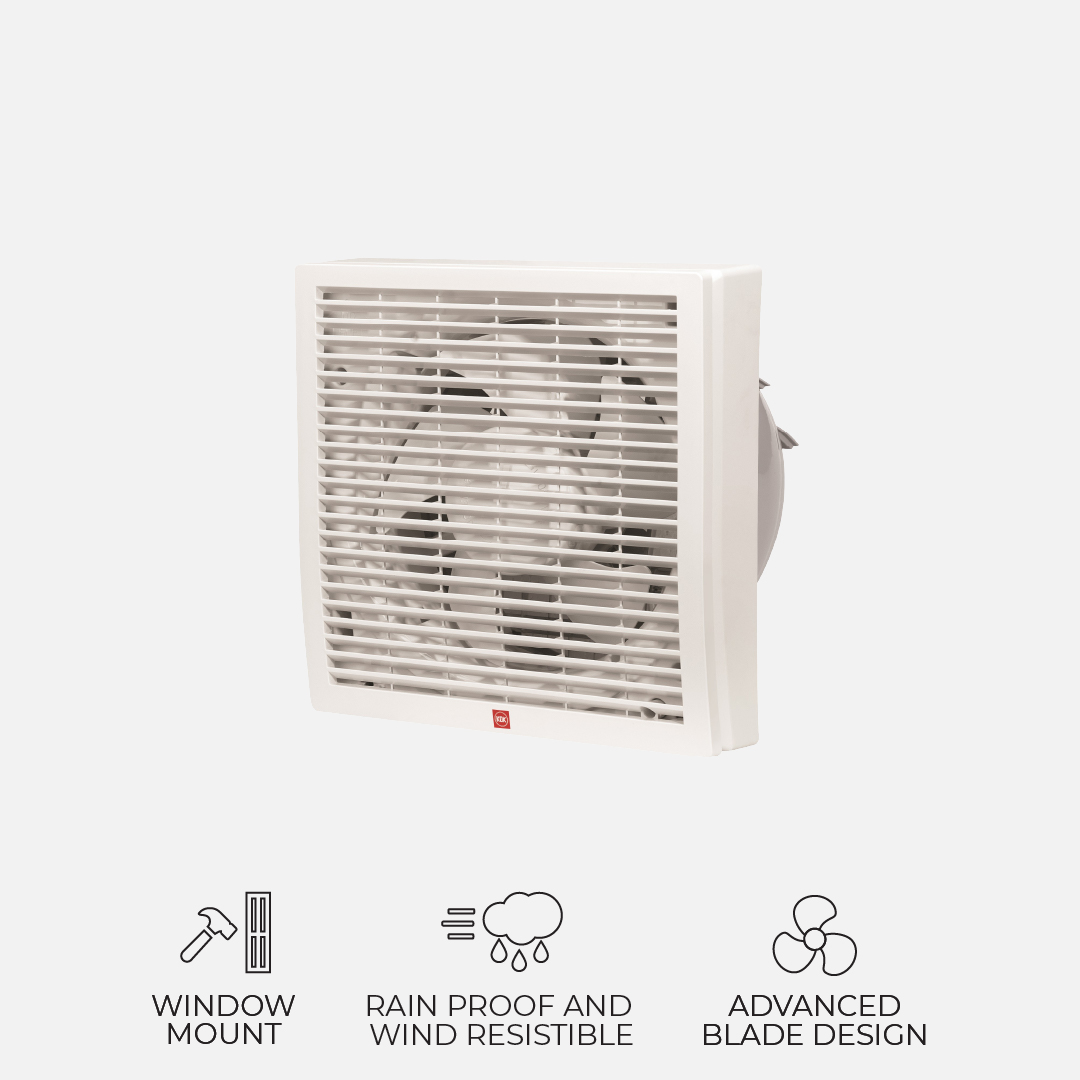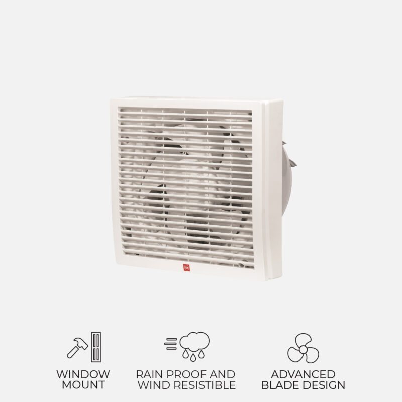 • HP Condenser motor • Hood & Bent End Shutter for Rain Proof and Wind Resistible • Advanced blade design • Unique Mounting Brackets for Easy Installation • Window mount• Able to fix on a glass plate of thickness from 3mm