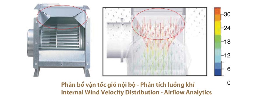 Wind velocity varies according to the shape of fan casing. The tapered scroll at the fan casing can minimize the turbulence induced by uneven wind velocity insice the casing