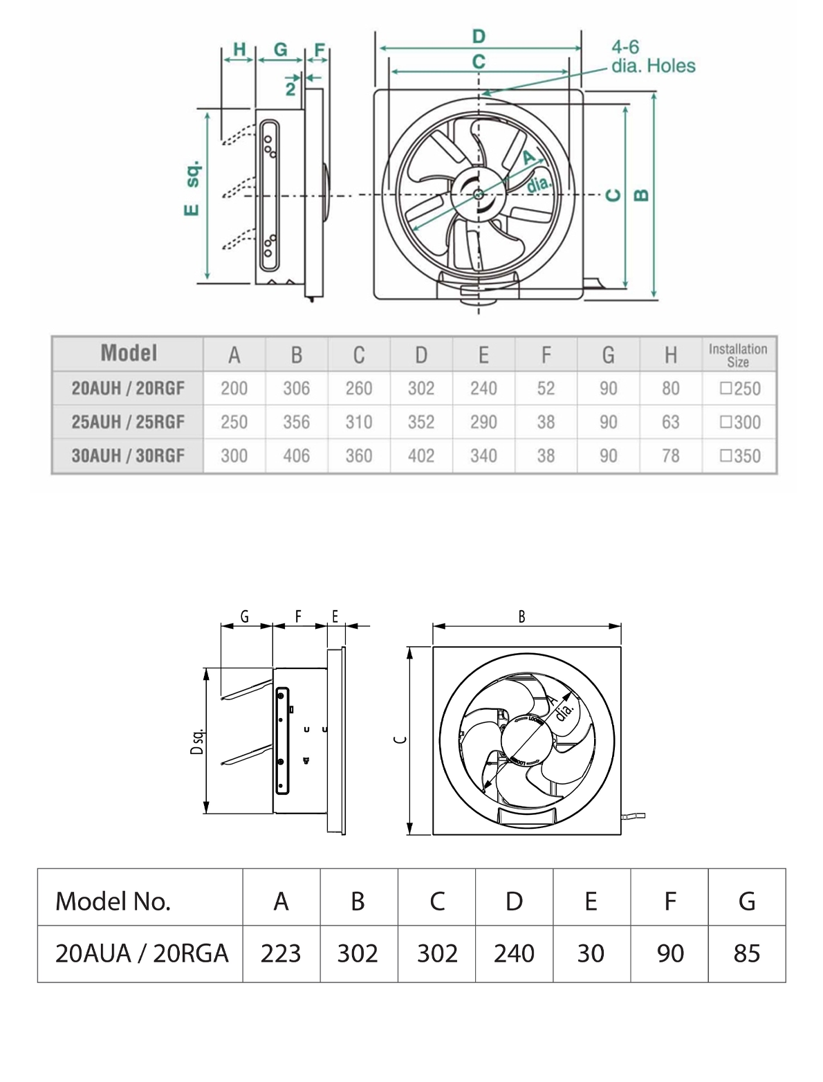 • HP Condenser motor • Well lubricated bearing • Advanced blade design • Automatic Shutter • Single Speed • Wall mount• Requires an installation space of 250mm x 250mm