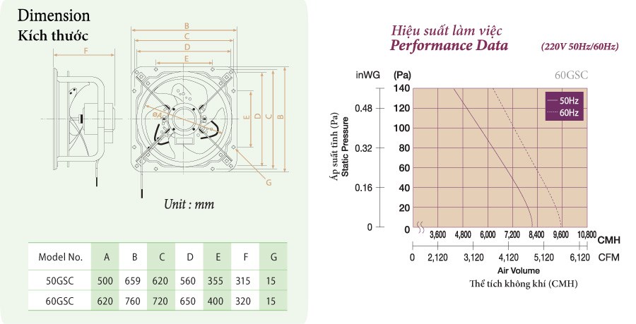 | Model | Tần số (Hz) | Thể tích không khí | Mức tiêu thụ (W) |